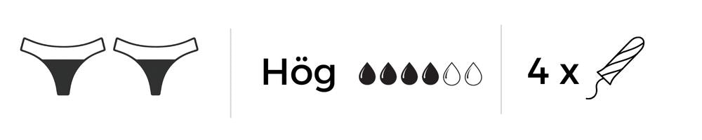 Hög absorption – trosan ersätter flera tamponger / bindor / trosskydd med hög uppsugning. Det tunna skyddet (ca 2mm tjockt) täcker hela grenpartiet.